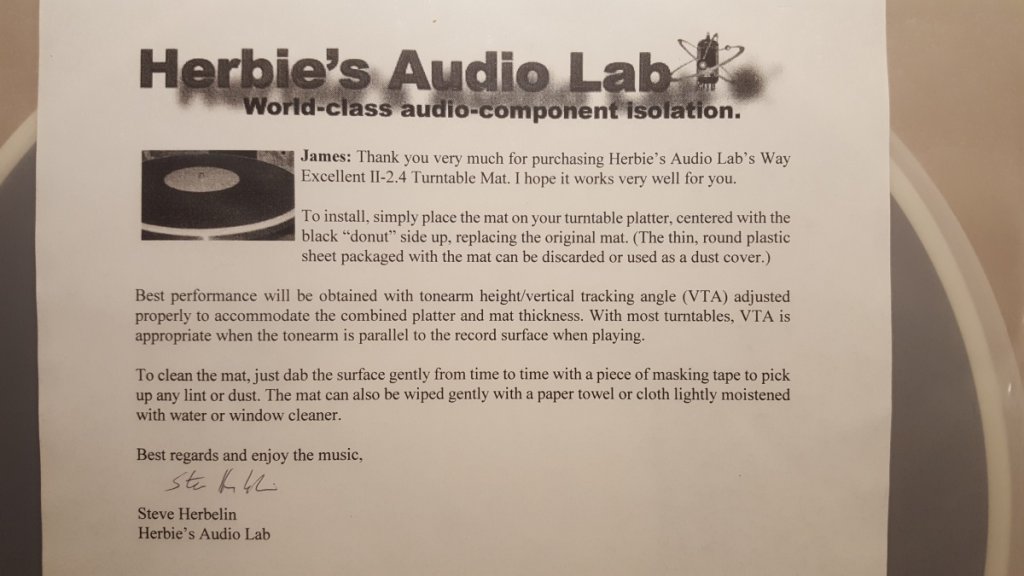 Since its introduction in december 2002 herbie s way excellent turntable mats have been tested against almost every kind of turntable mat with many different kinds of turntables both in house and by our customers.