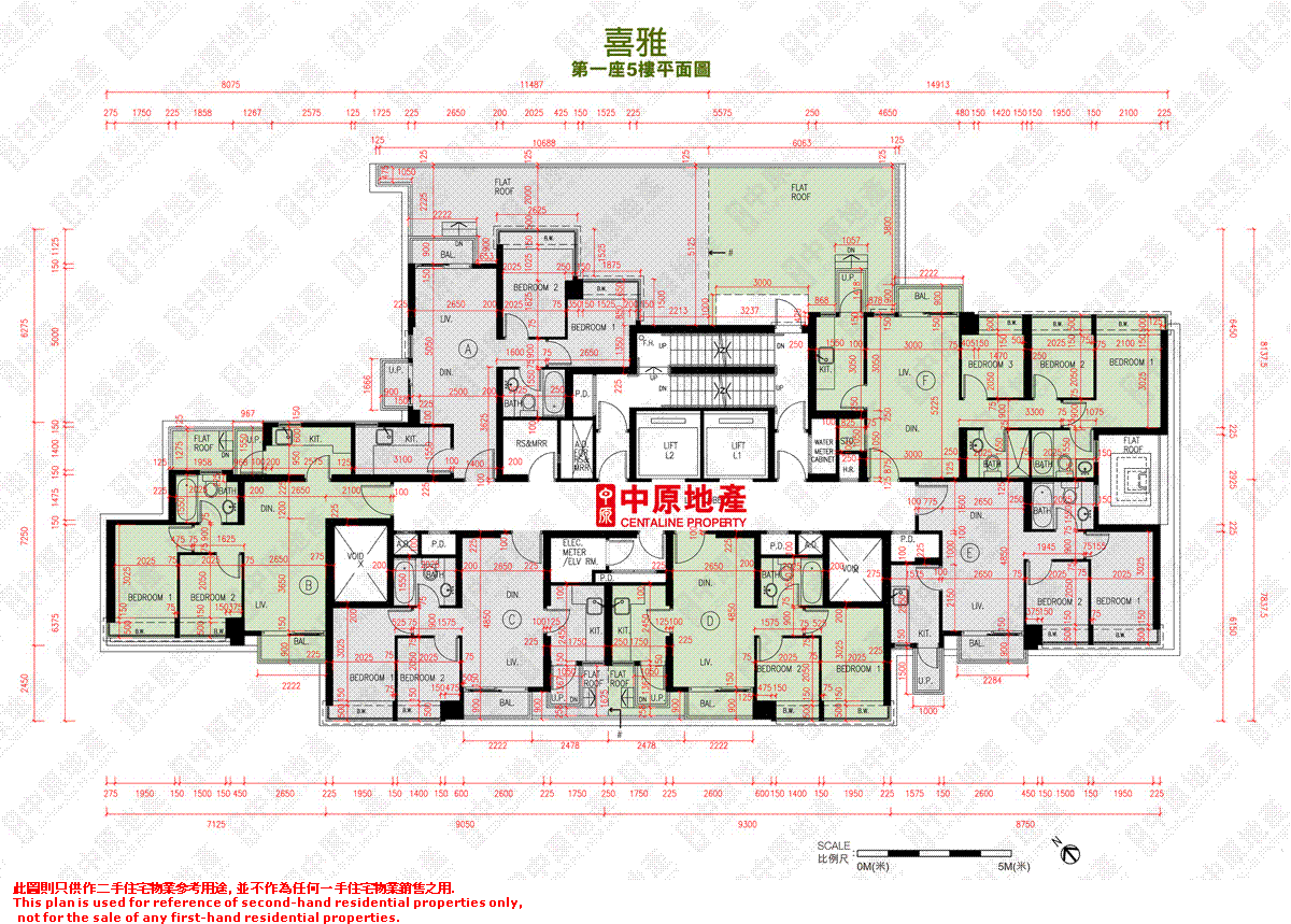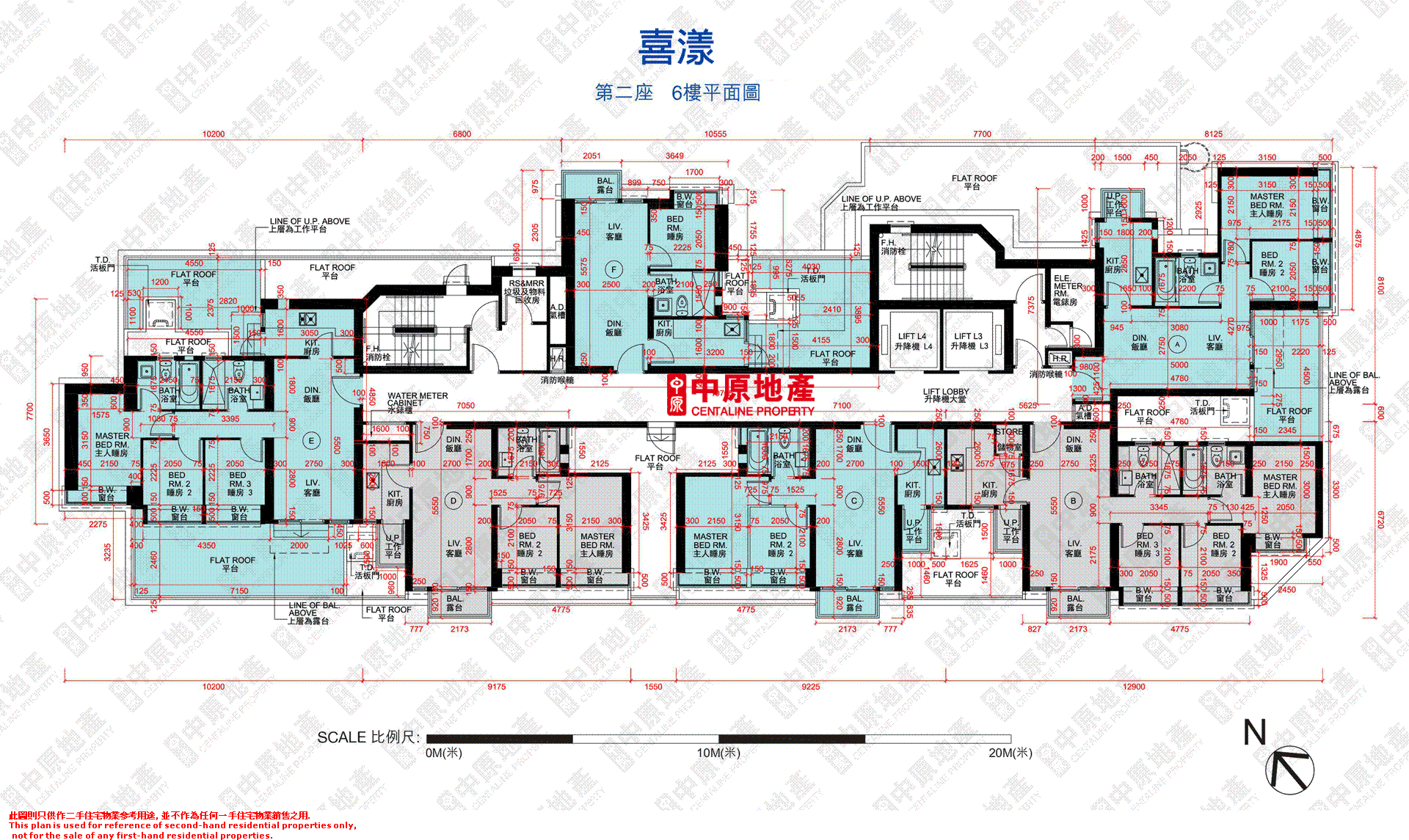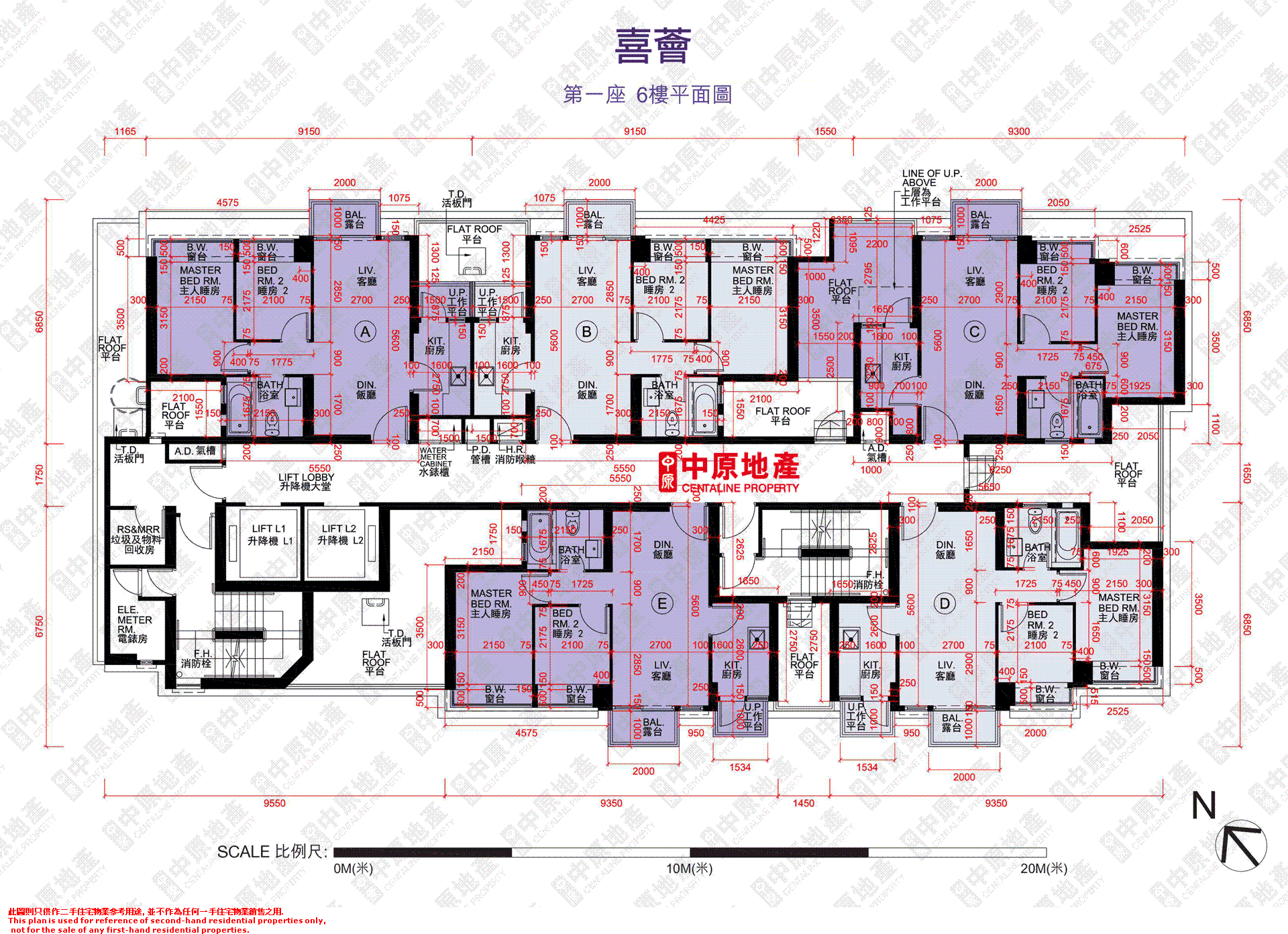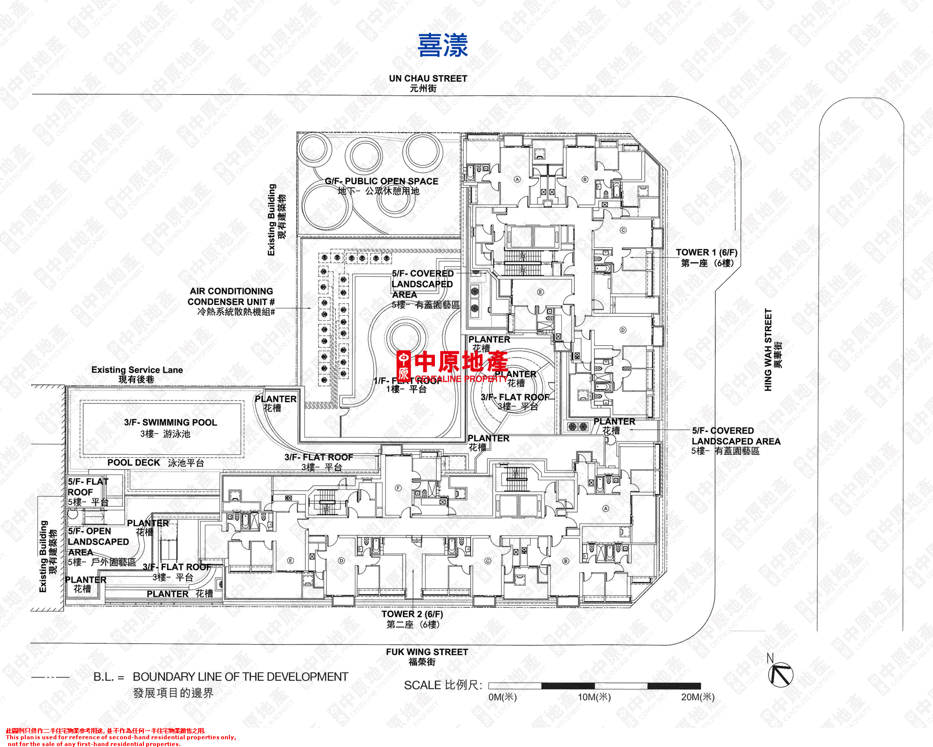 6 f tower 1 floor plan 第一座6樓平面圖 scale 比例尺.