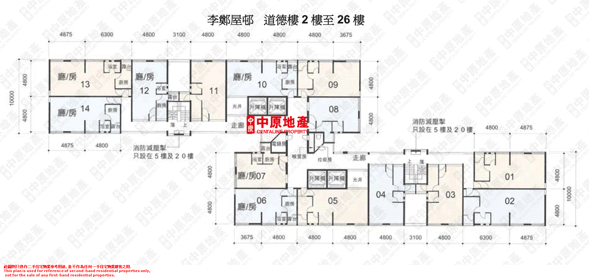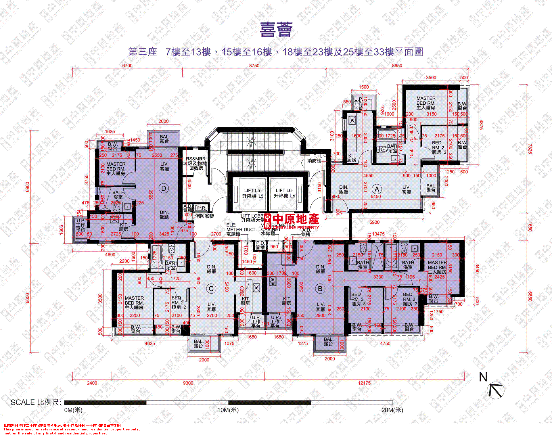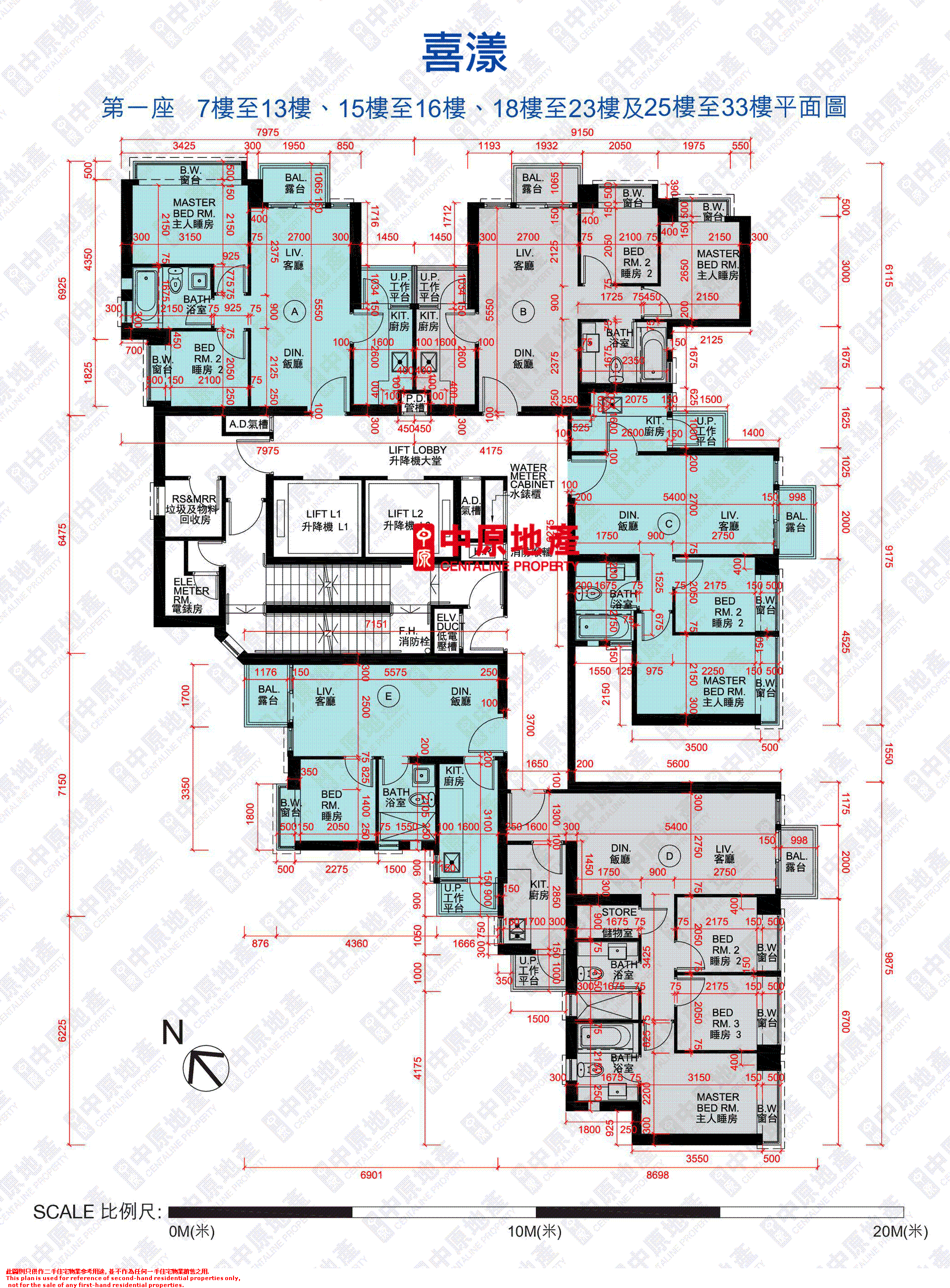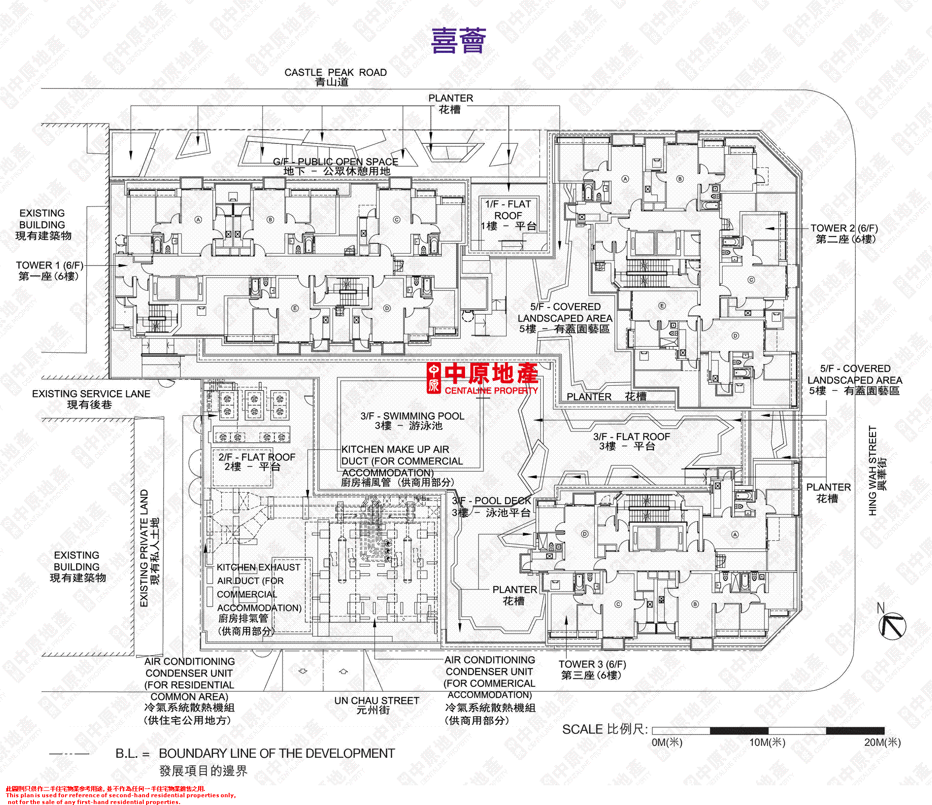 6 f tower 1 floor plan 第一座6樓平面圖 scale 比例尺.