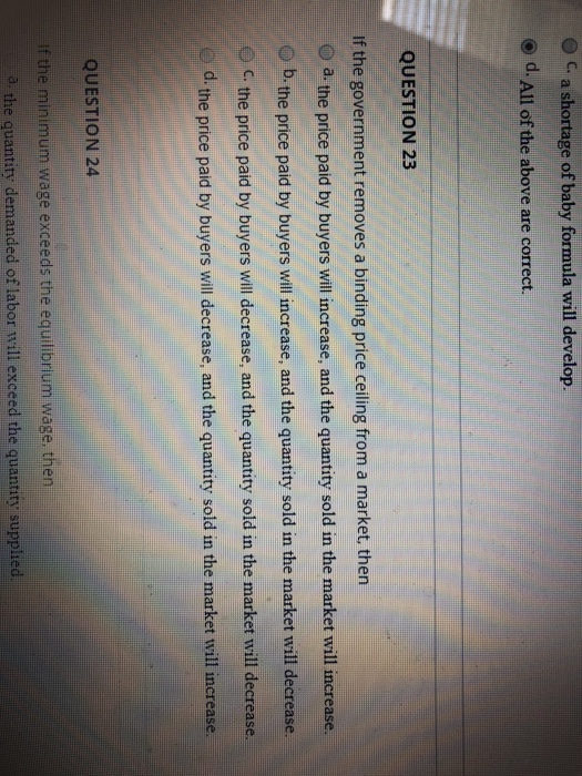 If The Government Removes A Binding Price Floor From A Market Then The Price Course Hero