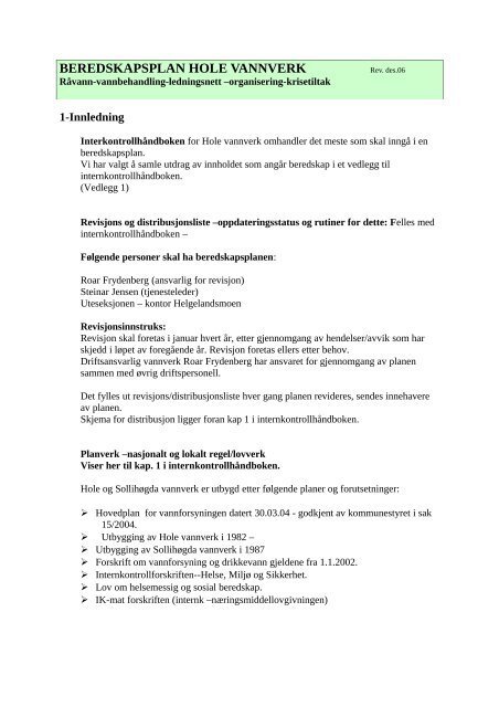 Internkontroll rutiner for hygiene mat og avfallshåndtering i.